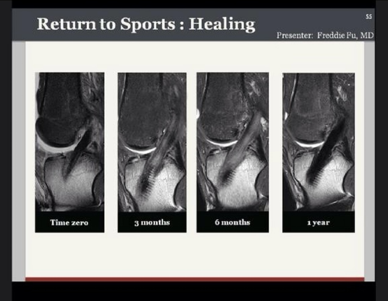 ![]() Image: ACL Graft Healing at Time 0, 3, 6, 12 months post ACL reconstruction with patellar tendon graft. Notice the lighter color on the 3 and 6 month images which represents less overall healing maturity of graft. Credit: Freddie Fu MD (University of Pittsburgh) DID YOU KNOW? The ACL graft at 6 months is 50% of normal breaking strength, at 8 months 80% of normal breaking strength. Shelbourne, K. D., & Nitz, P. (1990). AJSM Simple decision rules based on functional testing can reduce the risk of re-injury by 51% after ACL reconstruction when followed properly and when return to sport is delayed until at least 9 months. Grindem, H., et al (2016). BJSM Athletes who return to sport before 9 months are 2.5 times more likely to experience a re-injury compared to those who wait until after 9 months. Ardern, C., et al (2014). BJSM. ——————————- Quick Recap 1. The new ACL is typically weakest at 4-8 weeks from surgery, not the day after surgery. 2. Being a functional human is not the same as being a game-ready competitive athlete when it comes to knee ligaments (and the brain of the athletes they are connected to!) A poor rehab is done quickly, a great rehab lasts the test of time. 3. It takes 2 years to swim out of the shark invested waters after being bitten once. Your long-term habits of taking care of your body – warm up + strength training + quality sleep and nutrition, all done with intention – are you biggest insurance policies after a patient, high quality rehab. |